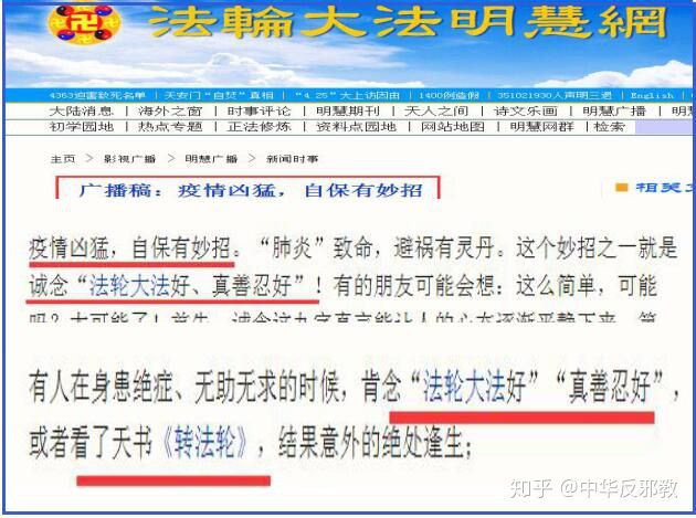 面对新型冠状病毒肺炎疫情,邪教法轮功的做法十分可笑。明慧网要求法轮功人员念“九字真言”、看《转法轮》来应对。因神韵艺术团不做防范,其成员感染新冠肺炎的可能性很大。